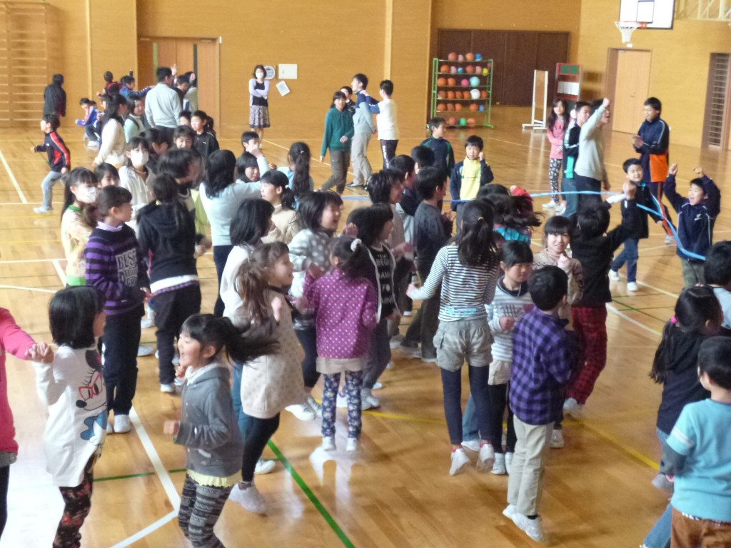 ロングタイム~みんなが仲良くなるために~ 2月26日 Posted on 2014/02/26Updated on 2014/03/04by adminカテゴリー:全校 みんな仲良しの下村っ子が、水曜日のロングタイムを利用して、 6年生中心に様々な活動を企画しています。 この日は、「下村○×クイズ」と「大縄八の字跳び」を全校で楽しみました。 6年生も卒業まであとわずかです。 下級生との交流を楽しんでいました。