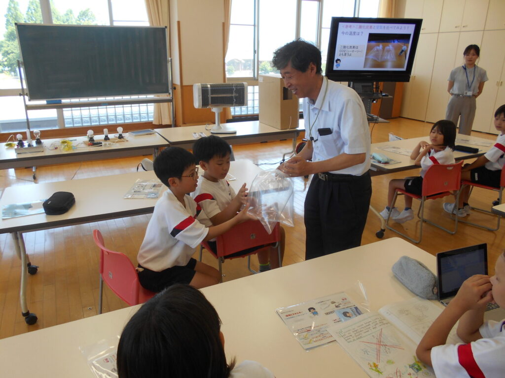 授業終了後、「袋の中に入った空気と二酸化炭素はどうなるの?」「太陽光発電の仕組みを詳しく知りたい!」とさらに学びを深めたくなるような疑問も出てきており、今後の探究学習への意欲にもつながっています。