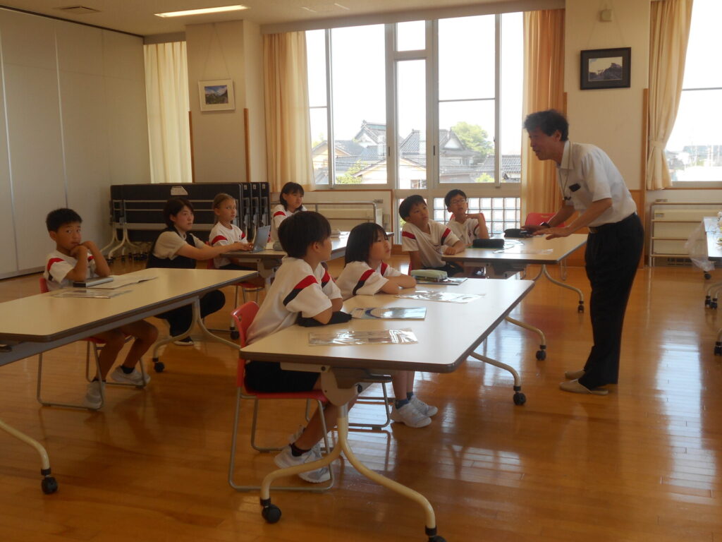 4年生の総合的な学習の時間では、環境問題について自分でテーマを決めて調べています。その一環として、6月18日(水)の5時間目に、北陸電力株式会社より講師の方をお招きして特別授業を行いました。