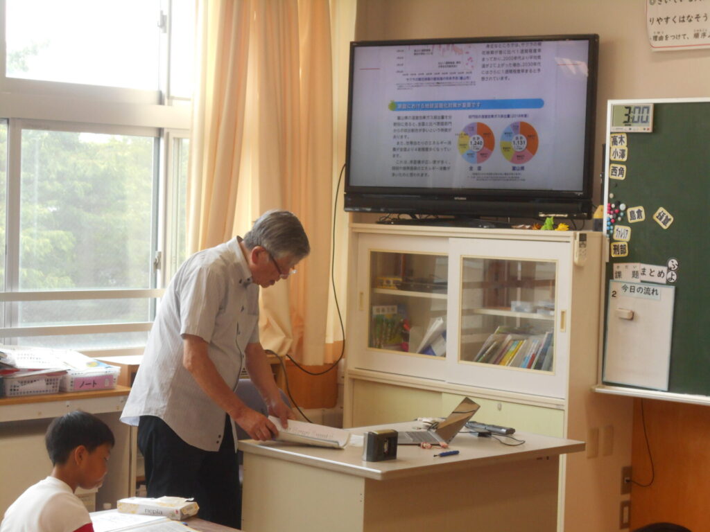 6月27日(金)に4年生が「とやま環境チャレンジ10」(公益財団法人 とやま環境財団)で、環境問題について学習しました。地球温暖化を防ぐために、みんなでチャレンジできることを考えました。水を大切に使う、電気を無駄使いしない、好き嫌いせずに残さず食べるなど、みんなでできることを出し合いました。これからも環境問題について学習を進めていきます。
