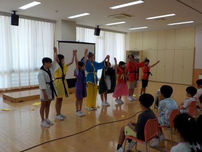 みんなから拍手をもらい、やり遂げた喜びでいっぱいの子供たちはとてもよい表情です。音読劇を見た子供たちからは、「七夕についてよく分かった」「スクールライフ・エンジョイ委員会のみんながとても上手だった」「友達ががんばっていて、感動した」という内容の感想が多数寄せられました。