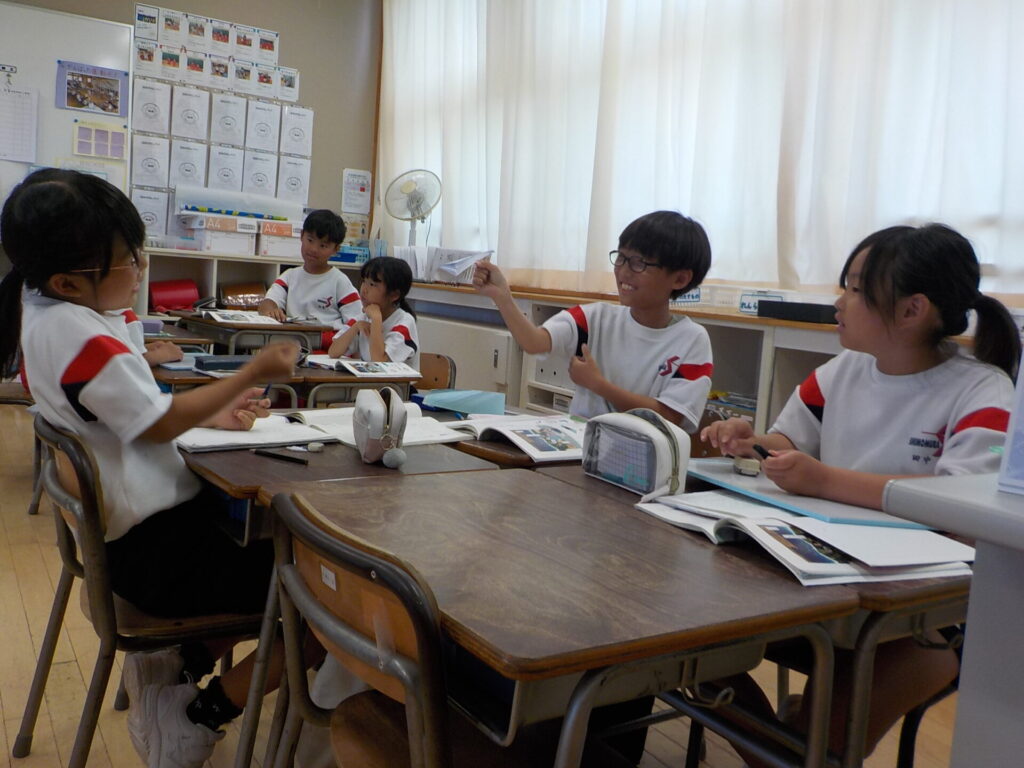 学習形態をグループにしたりペアにしたりして工夫したところ、「この勉強のスタイルは話しやすかった」「友達と一緒だと考えやすかった」など自分たちの学び方を振り返る意見が出ました。互いに聞き合いながら、学び進める環境づくりを増やしていこうと思います。