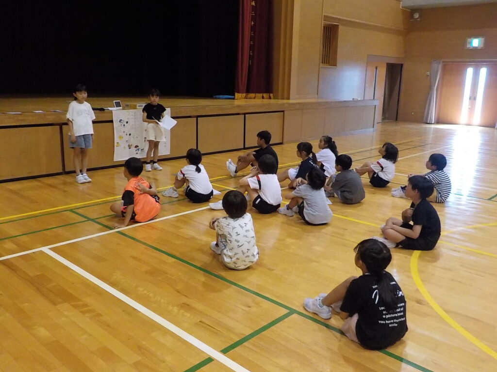 5、6時間目にお楽しみ会をしました。「2・3年生の仲を深め、仲間のよいところを見付けよう」を目当てに、「ケイドロ」、「増え鬼」、「バスケットボール」、「宝探し」をしました。