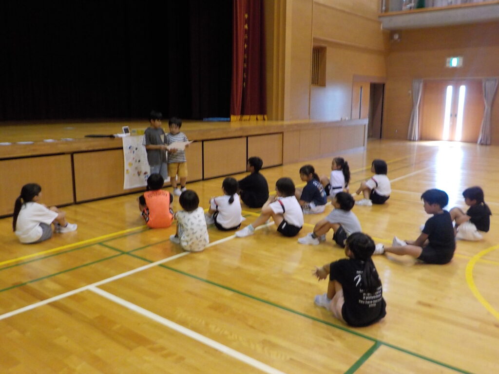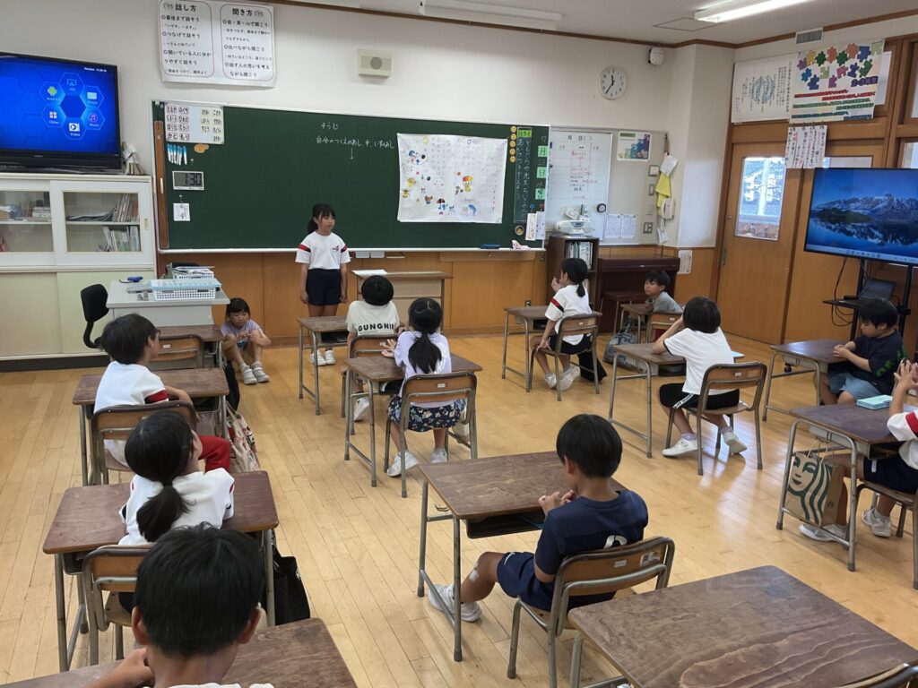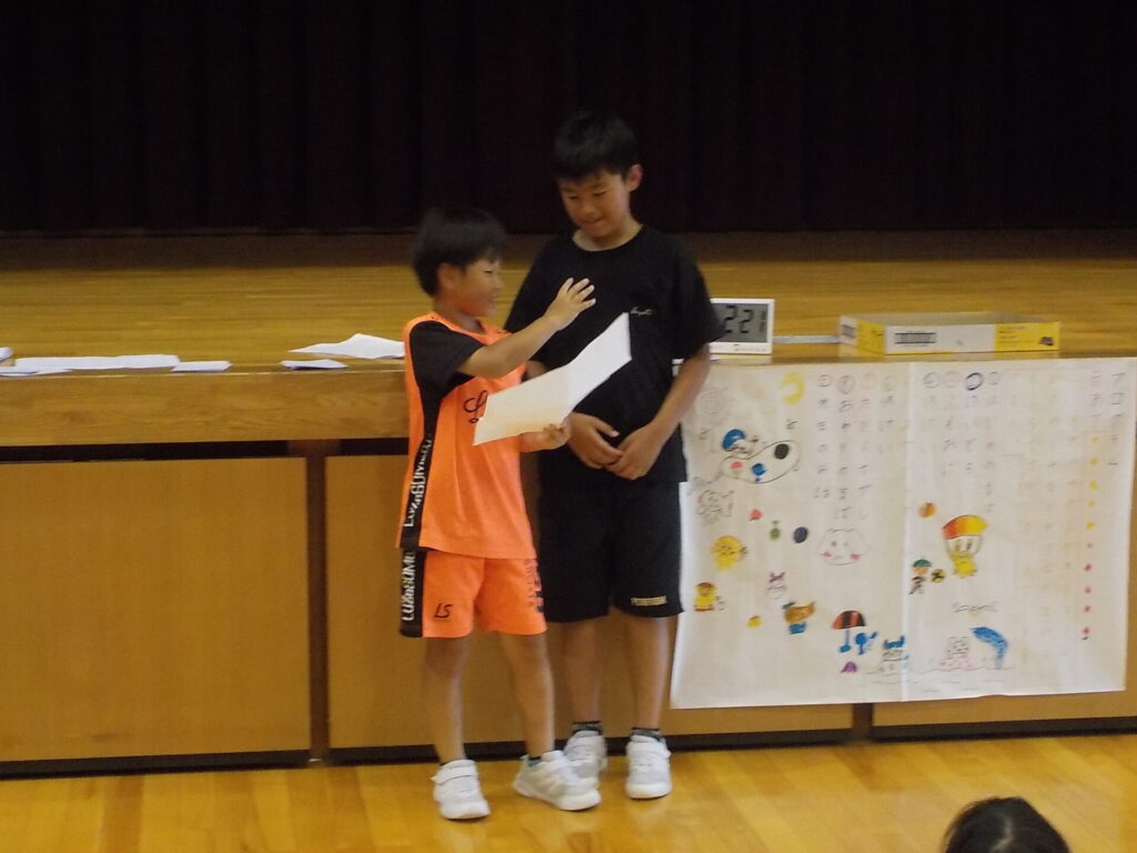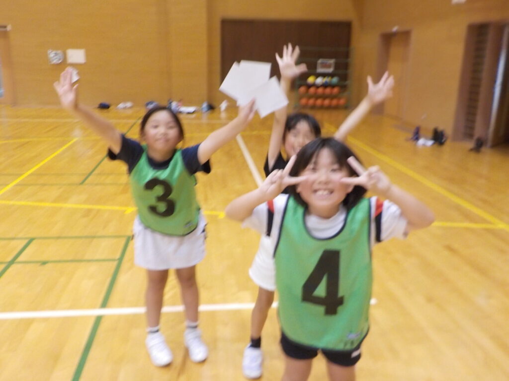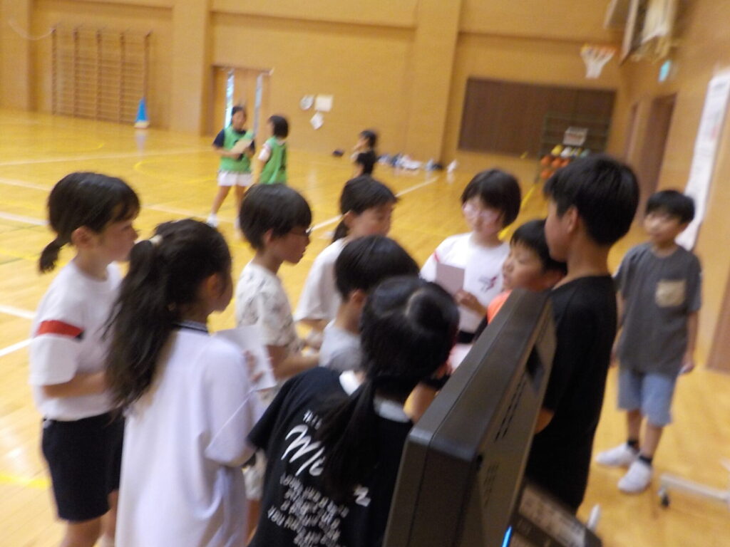振り返りでは、「バスケで負けて悔しかった。でも○○さんが上手で、自分も上手になりたいと思った」や「増え鬼の作戦タイムの時、いっぱいあったか言葉が出ててよかった」などと発言していました。目当てを意識した一学期最後のお楽しみ会になったことだと思います。(活動中の写真は児童が撮影しました)