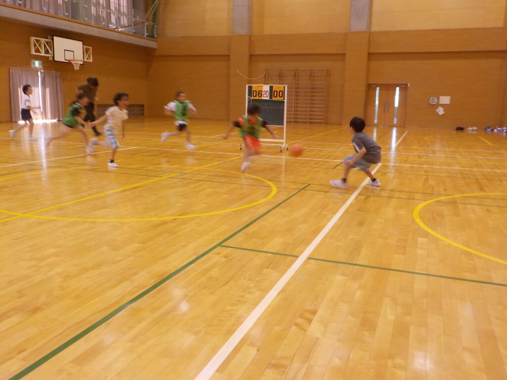 ケイドロやバスケットボールでは、走力や球技得意不得意に差がないよう工夫されたチームわけをし、みんなで楽しみました。宝探しでは、4グループに分かれ、決められた時間内で宝物を隠したり、見付けたりして楽しみました。