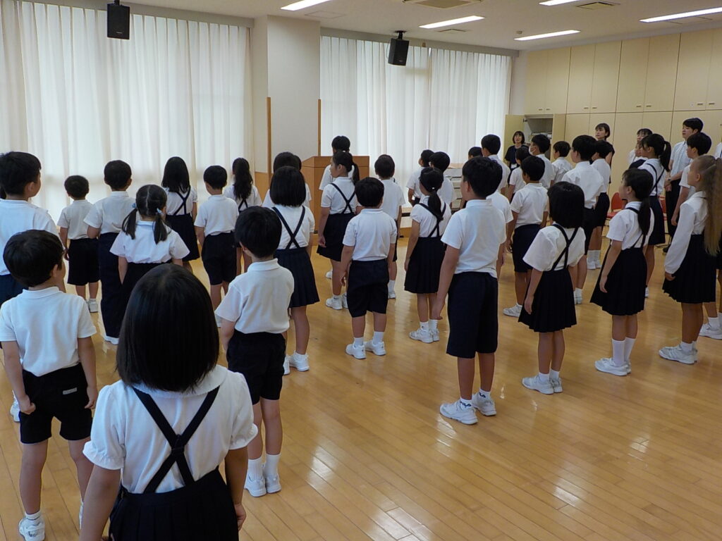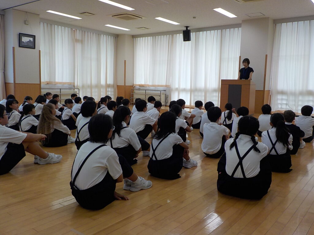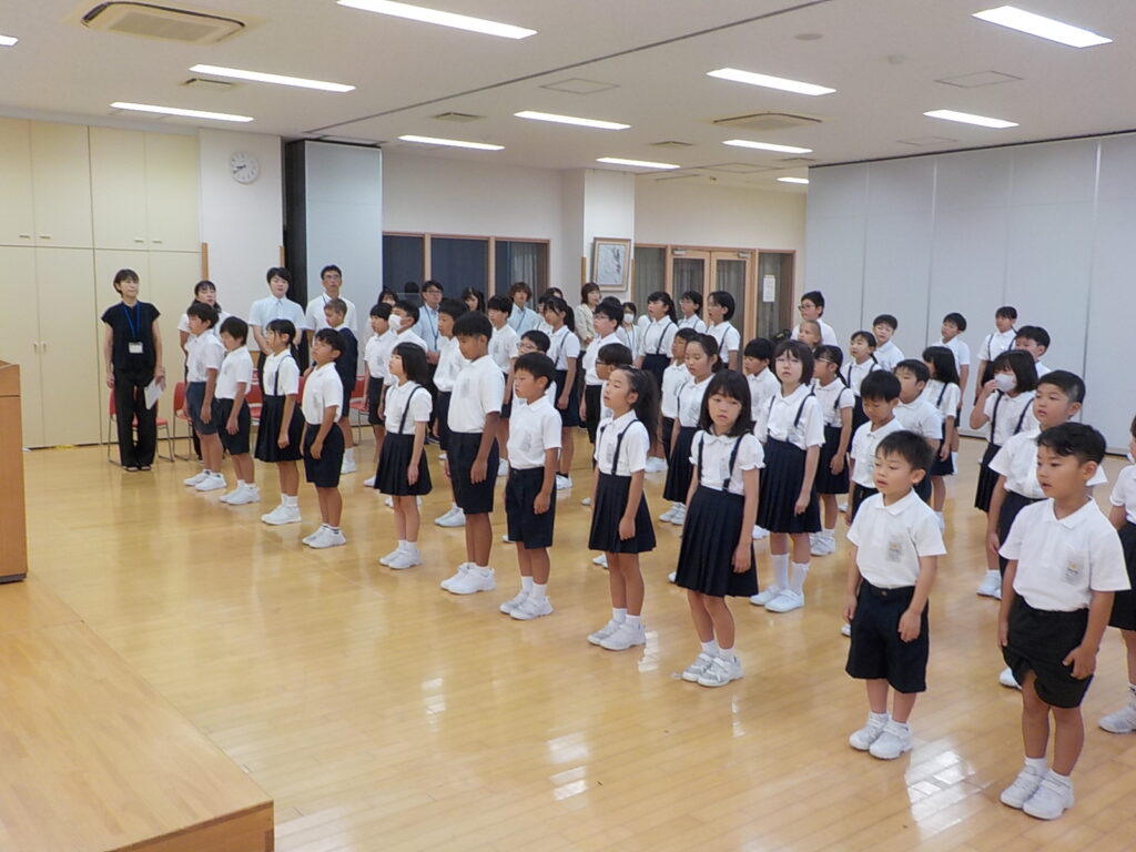 始業式は、校長先生の話をしっかりと聞く姿が見られ、子供たちの表情からも「新しい学期が始まるんだ」という期待や意欲が伝わってきました。各学級に戻ってからは、夏休みの思い出を振り返ったり、2学期の目標を書いたりして過ごしました。