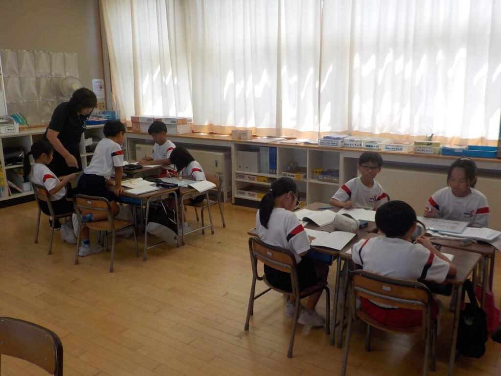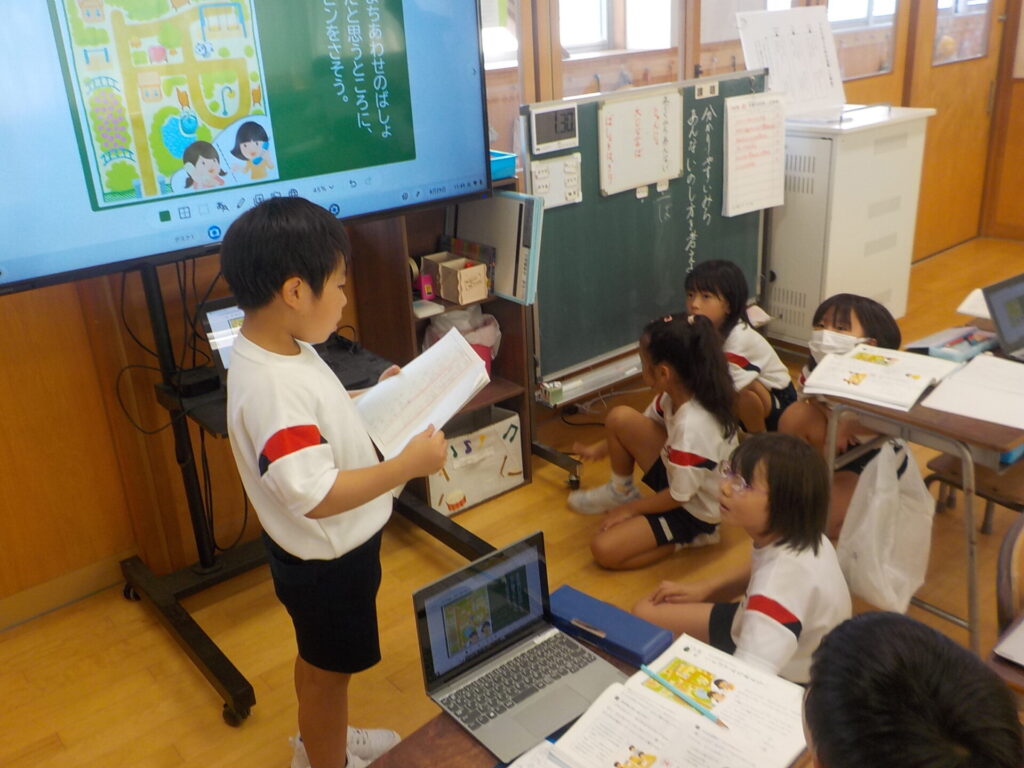 国語科の授業で、2年生「ことばでみちあんない」、3年生「詩を味わおう」を学習しました。2年生は、相手に正しく伝わるように案内するためには、説明する順序を考える、方向を表す、どこで曲がるかを伝える必要があることに気付きました。3年生は、二つの詩を比べ、それぞれ気付いたことや思ったことについて伝え合いました。詩全体のリズムのよさや言葉に着目し、言葉同士を比べていることに気付くことができました。