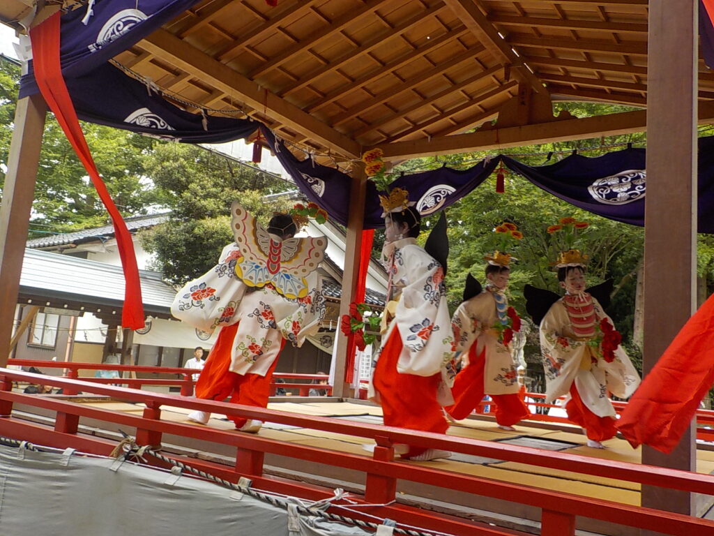 4人の稚児は1ヶ月近く稽古に励み、本番では稽古の成果を十分に発揮していました。すてきな化粧と衣装を身にまとい、それぞれの舞を堂々と踊る姿は、とても魅力的でした。