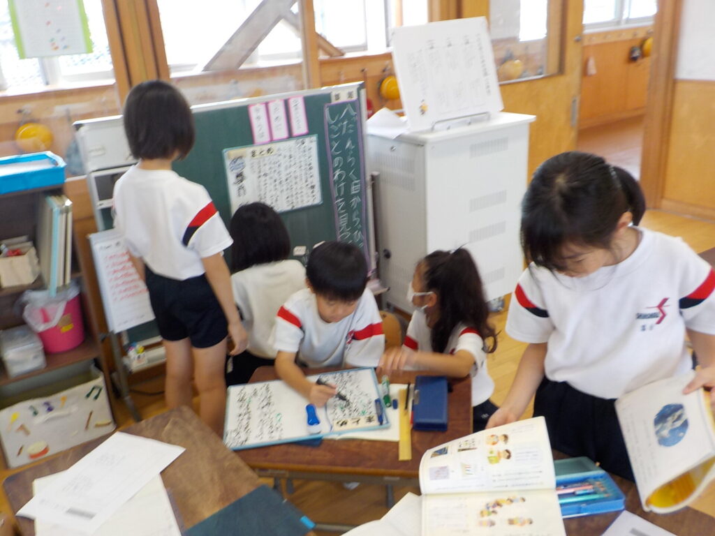 国語科の時間に、2年生「どうぶつ園のじゅうい」、3年生「ローマ字」の学習を進めています。2年生は、八段落目から筆者の仕事の「わけ」を、理由を表す言葉に気を付けたり、「わけは」と声に出したりしながら、見付けることができています。明後日は、獣医さんの仕事を振り返り「毎日すること」と「この日だけすること」について段落を分ける学習をします。