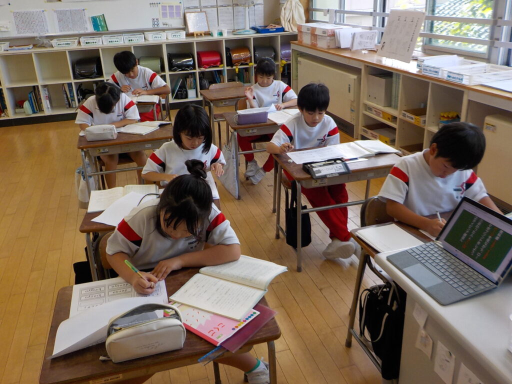 3年生は、ローマ字表の見方や書き表し方について確認し、『「し」や「ち」は二通りの書き方ができる』や「促音は、次に続く字を重ねて書く」など、決まりがあることを学びました。その後学習したことを、プリントで確認し定着を図りました。明後日は、タブレットでのローマ字入力の仕方を中心に学習を進めていきます。