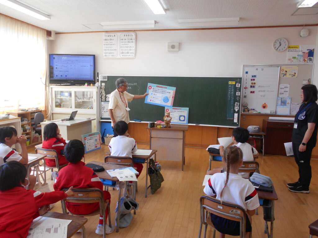今回は、環境チャレンジ推進委員の方にお越しいただき、夏休みに取り組んだ「環境チャレンジ10」の結果を報告してくださいました。