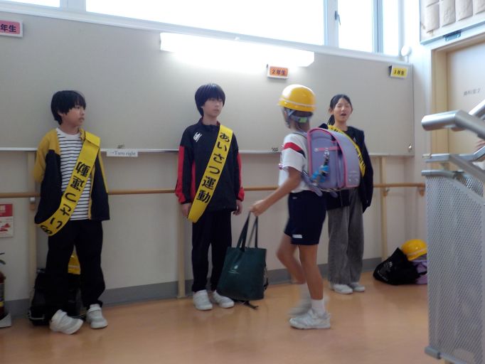 6年生は、誰にでも元気よく挨拶をする下村小学校にしていきたいと考え、挨拶運動を始めました。まずは6年生が手本となって、玄関や廊下、階段の踊り場等に立って元気に挨拶をしています。自分たちから元気な挨拶を広めていこうとする姿が頼もしいです。今後は、みんなの挨拶の様子を振り返り、「挨拶大作戦」等を企画していく予定です。