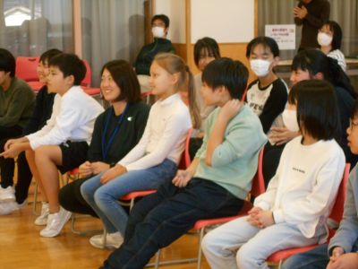 スクールライフ・エンジョイ委員会では、世界のいろいろなお話に親しんでもらおうと、ウクライナ民話『てぶくろ』の音読劇をしました。