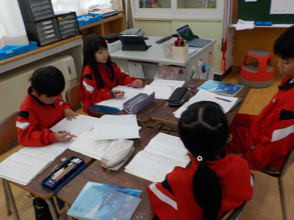 3年生は、場面を比べたり、ちいちゃんの気持ちの変化について詳しく読みとったりする学習を通し、物語から感じたことについて文章にまとめ伝え合う活動をしました。子供たちは、自分の考え方と似ていることろや違うところに注目して聞き合いました。振り返りでは、「『悲しい』と感じていたことは同じだったけど、理由が違っていた。そういう考えもあると分かった」、「理由となる文が一緒だった。○○さんと同じ考えだったことが分かった」、「○○さんの考えを聞いて、最後家族に会えたから、悲しいだけじゃなく、嬉しいもあると思った」等、友達の考えを受け止めることができました。