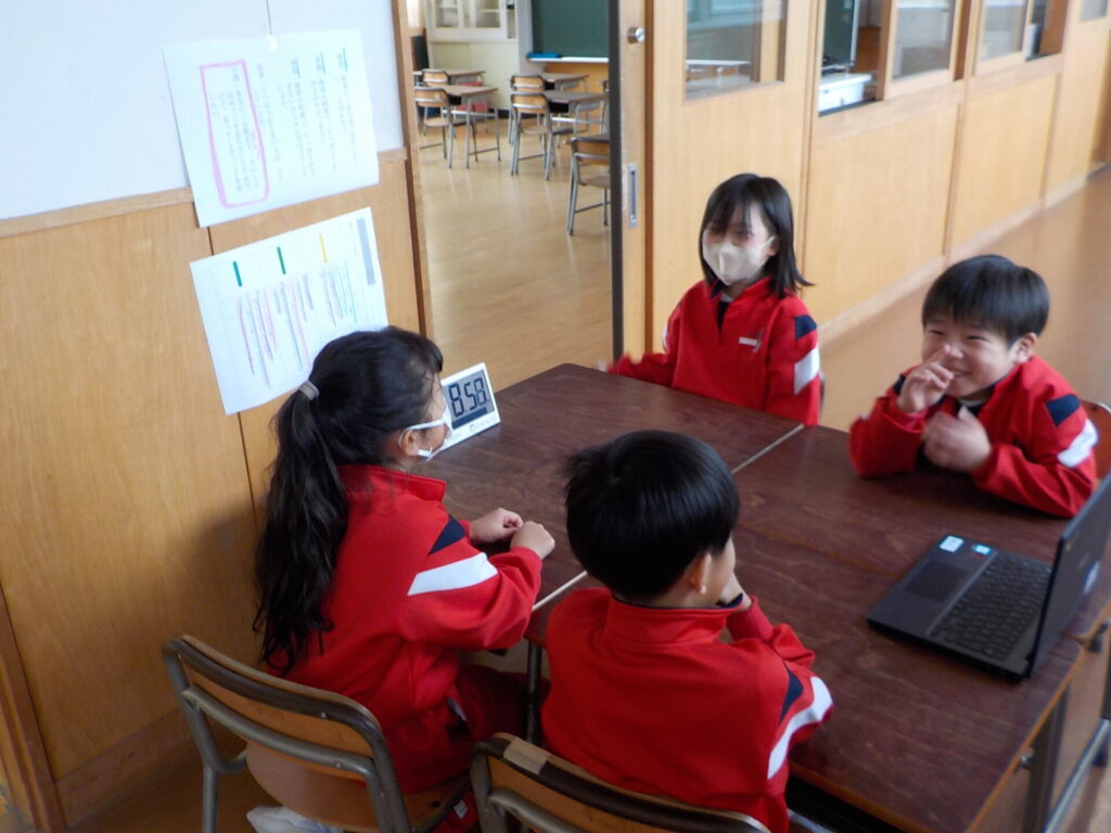 国語科の時間に、3年生「ちいちゃんのかげおくり」2年生「そうだんにのってください」の学習をしています。2年生は、相談する人、相談される人に分かれて、『話合いを進める時』『みんなで話し合う時』『話をつなげるときの言葉』の3つの大事なポイントを生かしながら、一回目の話合い活動をしました。子供たちは、自分たちの話合いの動画を見返し、よかった点や課題となる点について振り返りました。「自分の考えを理由を付けて言うことができた」と成果を口にする子供がいる一方で「あまり質問できなかった」「しーんとした時があった」等、話をつなげる言葉に課題があることに気付いた子供もいました。次回は課題となる点を意識しながら、2回目の話合い活動をします。