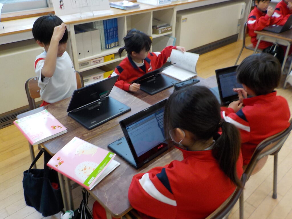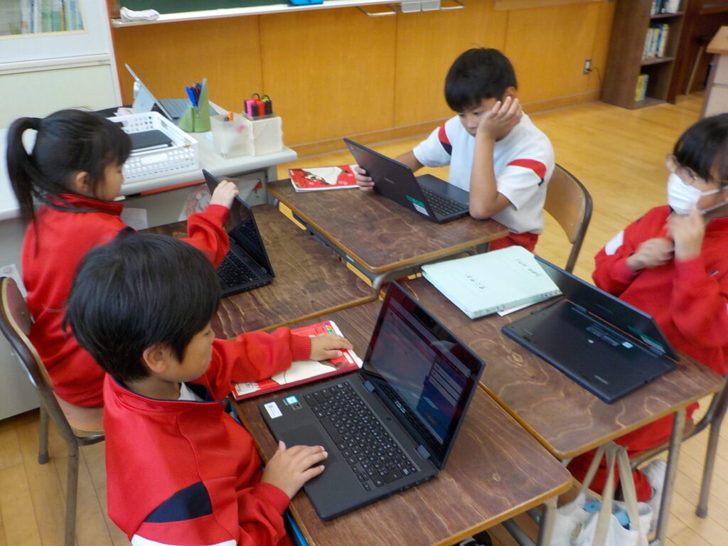 3年生は「修飾語を使って書こう」の学習に入りました。2年生で学習した「主語」「述語」の意味を復習しました。そして、例文に「どんな」「どのくらい」等の「修飾語」を使うと、文章の内容がもっと詳しくなることを学びました。その後、学習用端末機で練習問題に取り組みました。次回は、修飾語を使って、絵の様子について詳しく説明する文章を書いていこうと思います。
