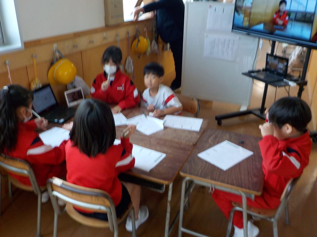 国語科の時間に、2年生「そうだんにのってください」、3年生「修飾語を使って書こう」の学習をしています。2年生は、3回目の相談です。自分たちの話合いの動画を見返し、『話合いを進める時』『みんなで話し合う時』『話をつなげる時』の3つの大事なポイントごとに、自己評価をしています。振り返りでは、「前回より、自分の考えを理由を付けて言うことができた」や「頷きながら聞くこができた」「相談したことを実際にやってみたい」と自身の成長を自覚することができました。しかし「質問はできたけど、しーんとする場面があった」ともっと話をつなげたいと思う子供もいました。次回は、どんな場面で、どんな質問ができるか確認し、四回目の話合い活動をします。