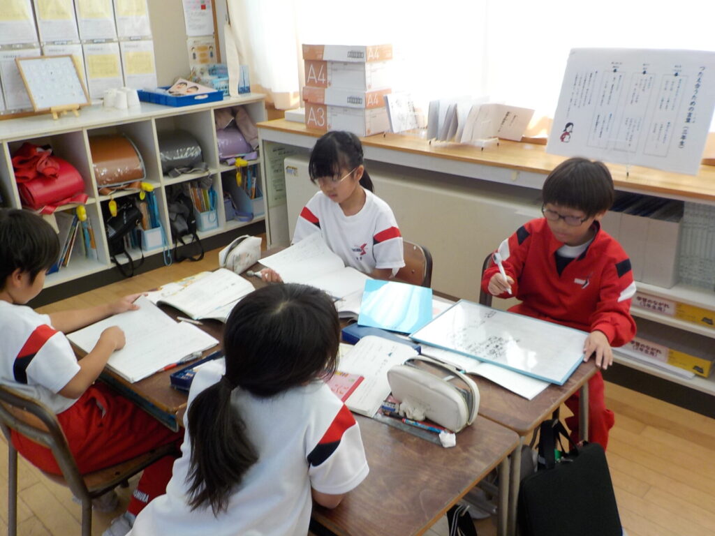 国語科の時間では、2年生「そうだんにのってください」、3年生「秋のくらし」の学習をしています。2年生は、6回目の相談です。今日は子供たちが課題としていた「話をつなげる時の言葉」に着目し、話合い活動をしました。撮り溜めた動画を見返し、シーンとした時に、どんな言葉を使ってつなげることができるか考えました。子供たちは、相手が理由を伝えてない場合「なぜ、どうして」と尋ねたり、「詳しく教えてください」、「○○さんどうですか」と発言を促したりすることができることを学び、実践しました。振り返りでは、学んだことを実践できた喜びや嬉しさを感じている様子でした。