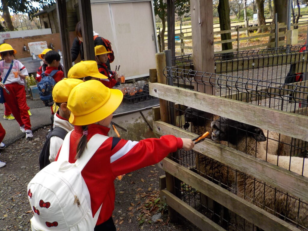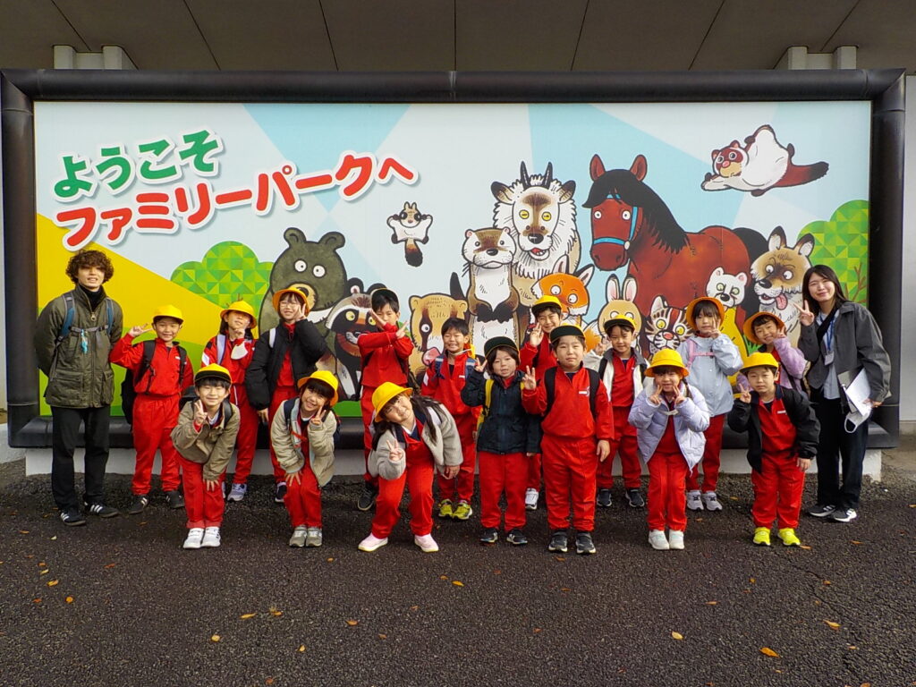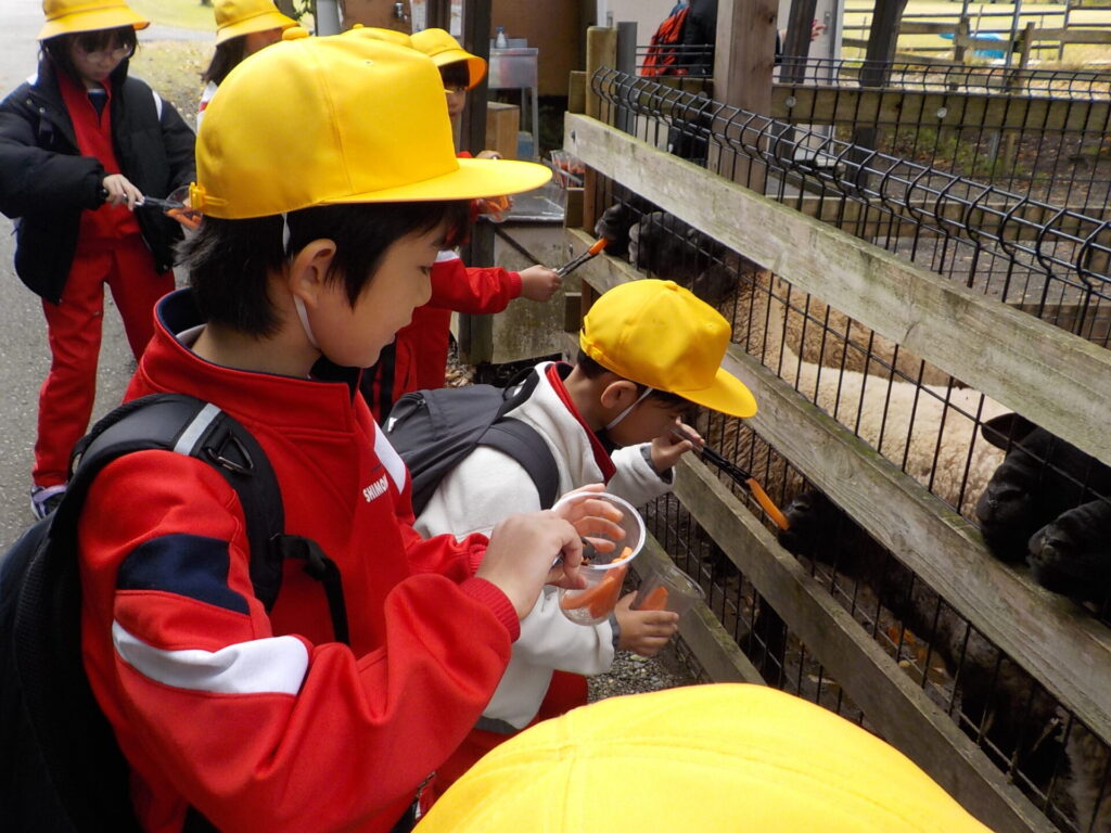 1、2年生は、校外学習で「富山市ファミリーパーク」へ行きました。生き物と触れ合ったり、友達と協力しながら行動したりすることを目当てに活動しました。子供たちは、班長、副班長を中心に班ごとに並んで園内を歩きました。子供が、リスが走っている様子を見て「シャトルランしてるみたい!」と表現し、心が温かくなりました。