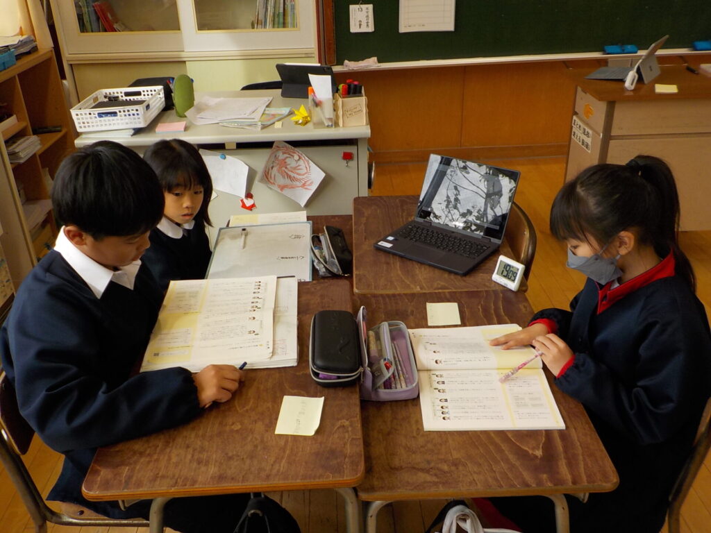 3年生は、前回の話合いの課題を改善しようと、本を選んだ理由をできるだけ簡潔に伝えたり、友達の意見に対しても、「いいね」や「分かります」など相槌を打ったりする姿がありました。司会で困った時は、教科書を取り出し、参考にしようとする姿もありました。振り返りでは、「意見の言い合いにならなかった」や「決め方に沿って、話合いを進め、本を決めることができた」など、明るい表情で振り返ることができました。次回は、撮影した話合い動画を見返し、学習のまとめをしていきます。