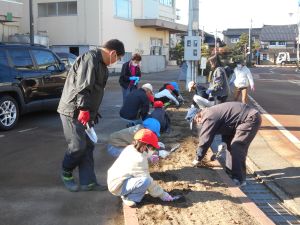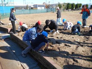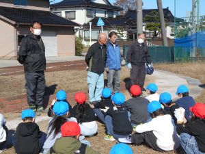 11月20日(木)の栽培タイムでは、全校でチューリップの球根を植えました。地域のグリーンキーパーさん4名が来てくださり、球根3つ分の穴を掘ってから球根を埋めることや、球根には栄養がしっかり含まれているため肥料を与えなくても育つことなどを教えてくださいました。最後の振り返りタイムで子供たちは「グリーンキーパーの方に教えてもらって上手に植えることができた」「思ったよりも球根が大きかった。よく育ちそうだと思った」といった感想を発表してくれました。春にどんな色のチューリップが咲くのか楽しみです。