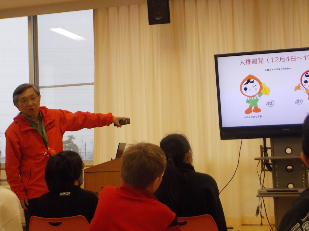 また、12月4日~10日の人権週間に合わせて、人権擁護委員の先生方にも来校していただきました。人には困ったことや元気のない時はあるので、そんな時は、①周りの人に相談すること、②普段から思いやりをもって周囲に接すること、特にこの2点を改めて考えて生活してほしいとお話していただきました。