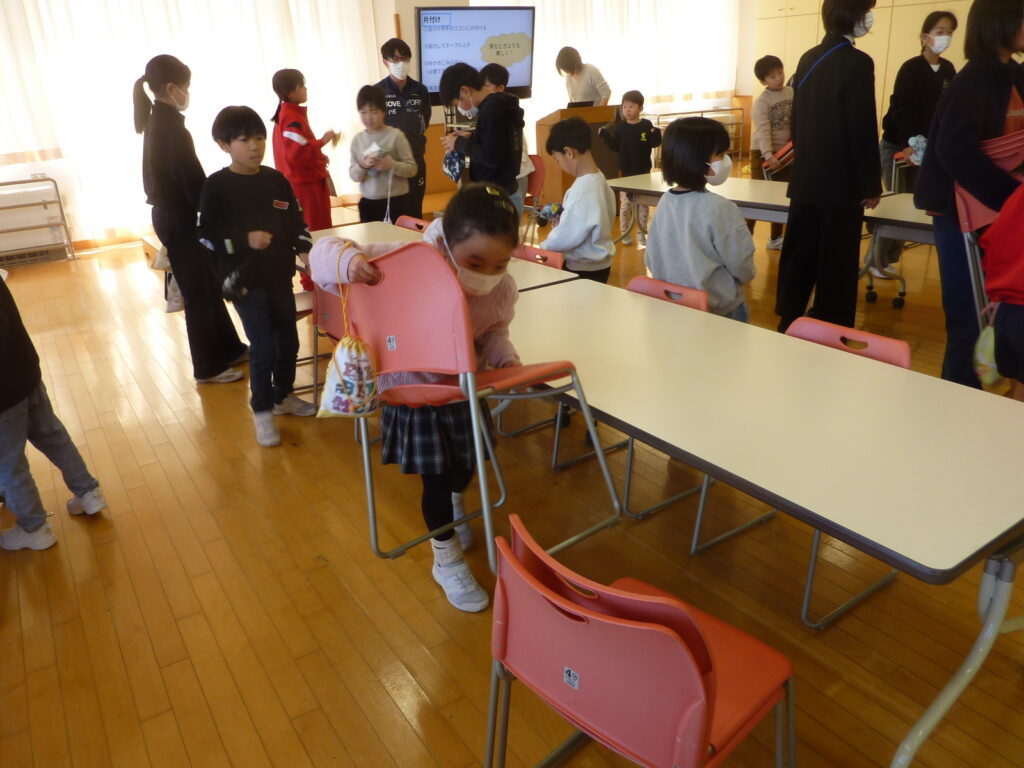 食事の後は、班で協力して後片付けをしました。「来たときよりも美しく」を合い言葉に、上学年が下学年をサポートする姿が見られ、とても頼もしく感じられました。