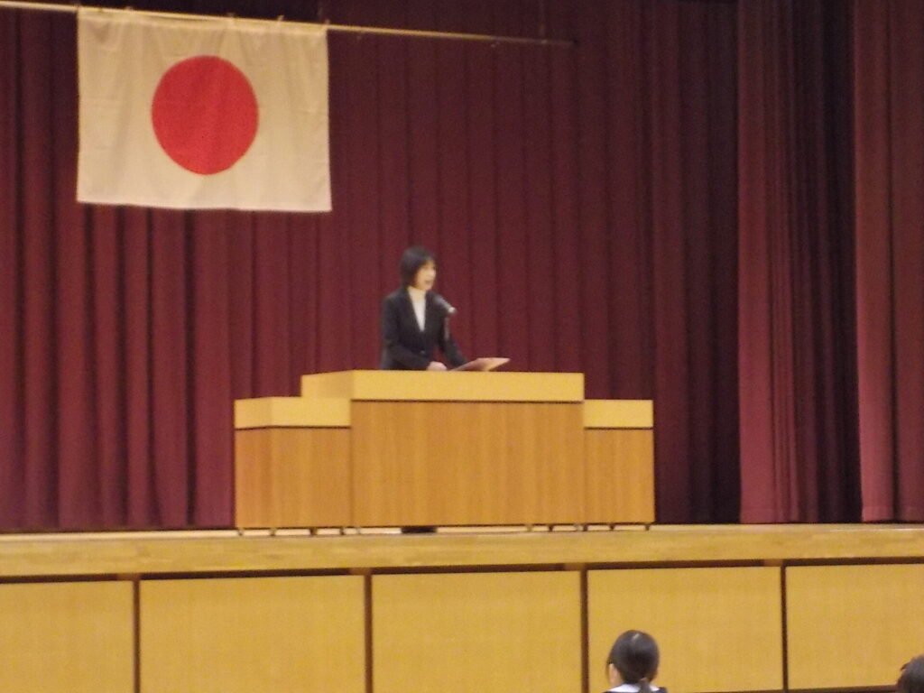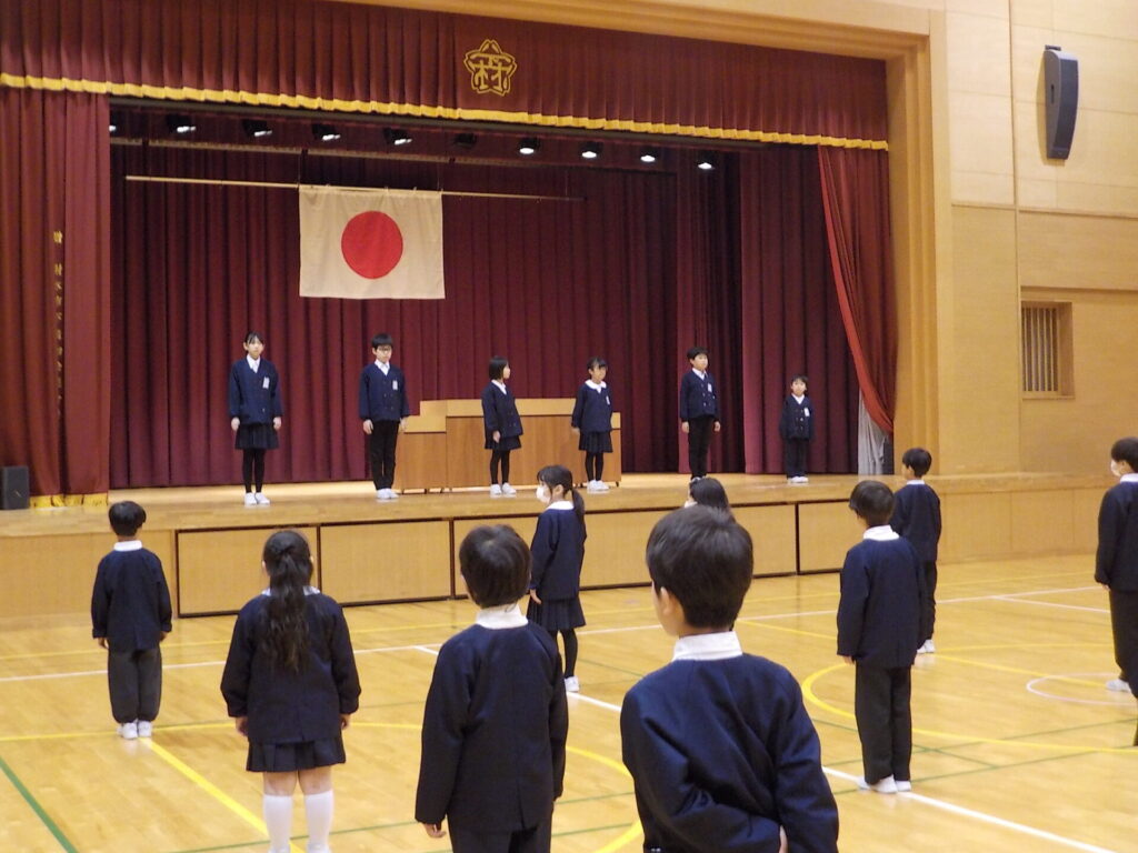 式の最初に、各学年の代表1名がステージ上で2学期に頑張ったことを発表しました。どの子供も自分の学びや成長したことを堂々とした態度で発表しました。