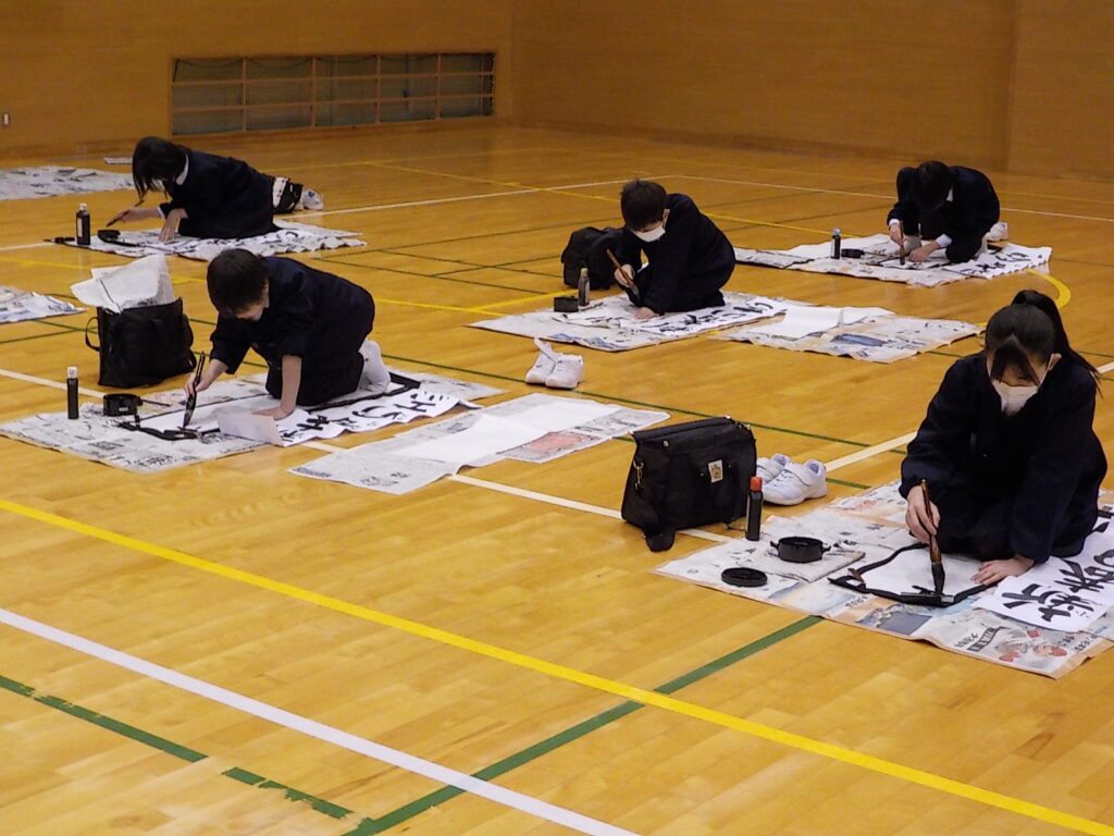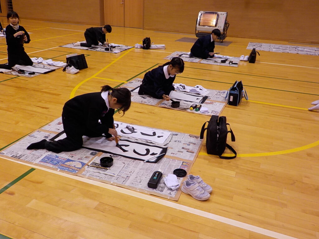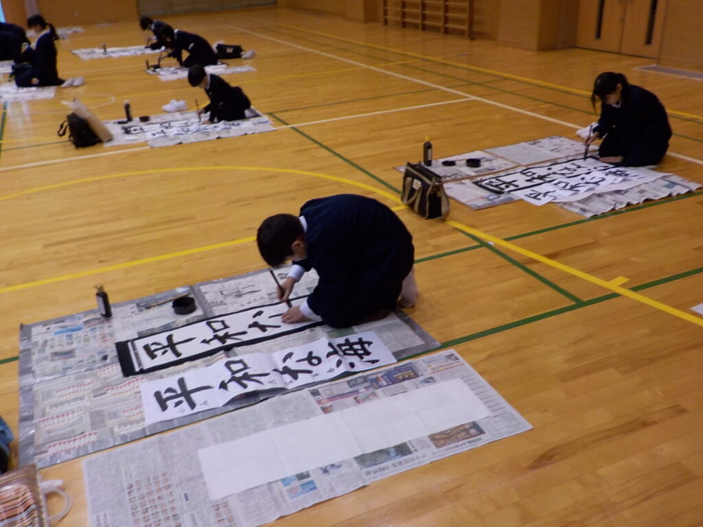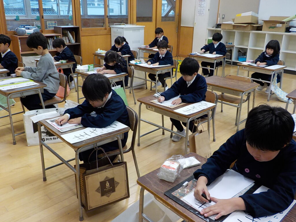 始業式の後には、「書初大会」を実施しました。 静まり返った空気の中、子供たちは集中して筆を運び、一画一画を丁寧に書き上げていました。