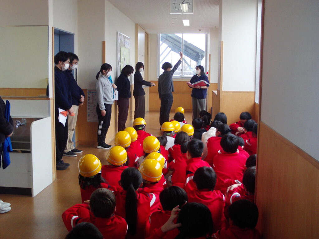 これまでは授業中に教職員の指示のもとで行う訓練が中心でしたが、今回は子供たちが体育館や図書室、教室などそれぞれの場所で過ごしている時間に実施しました。突然の緊急地震速報の放送に驚く様子もありましたが、子供たちは即座に机の下に潜ったり、頭を守る姿勢をとったりと、自分の判断で身を守る行動ができました。