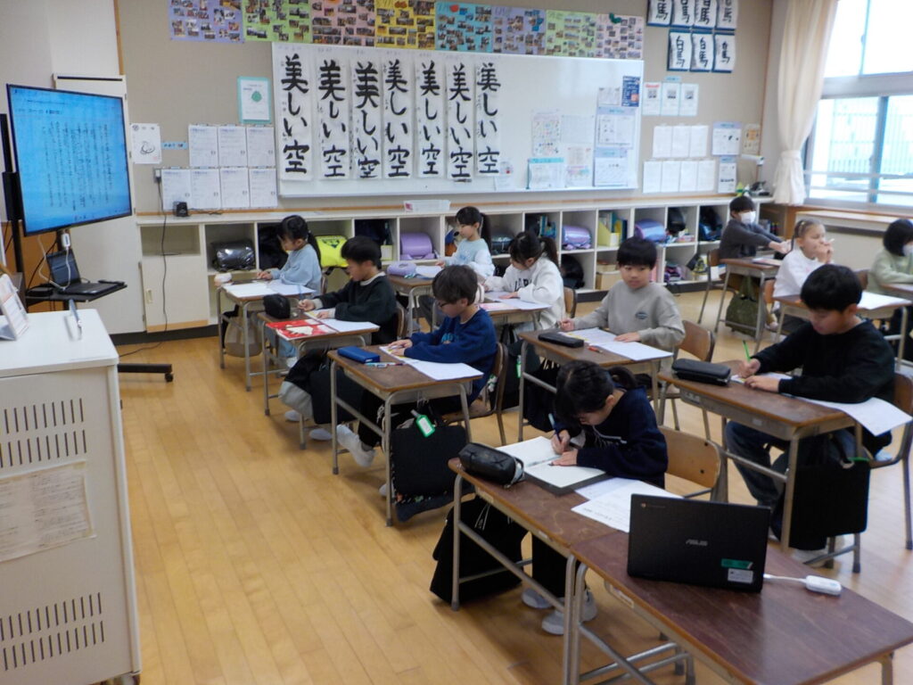 次年度に向けて、1・2年生、3・4年生に分かれて授業を行いました。子供たちは、普段とは異なる環境の中でも、自分たちで学習を進めようとする姿が見られ、大変頼もしく感じました。
