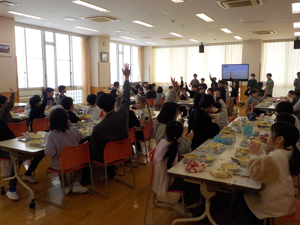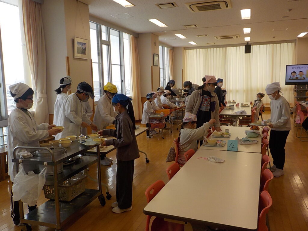 食事の後は、なかよし班で協力しててきぱきと片付ける姿が見られました。今回のありがとうランチを通して、給食を支えてくださっている方々への感謝の気持ちと、みんなで食べることの楽しさを全校で感じることができました。