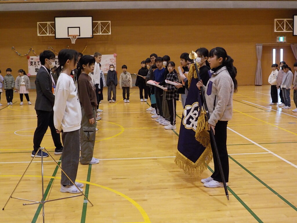 さらに、引継ぎ式も行われ、6年生から「来年度は最高学年として頑張ってほしい」と5年生へバトンが渡されました。