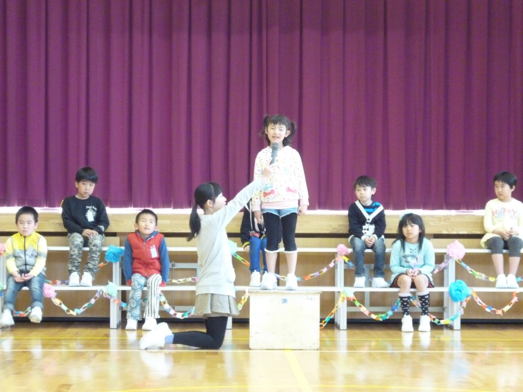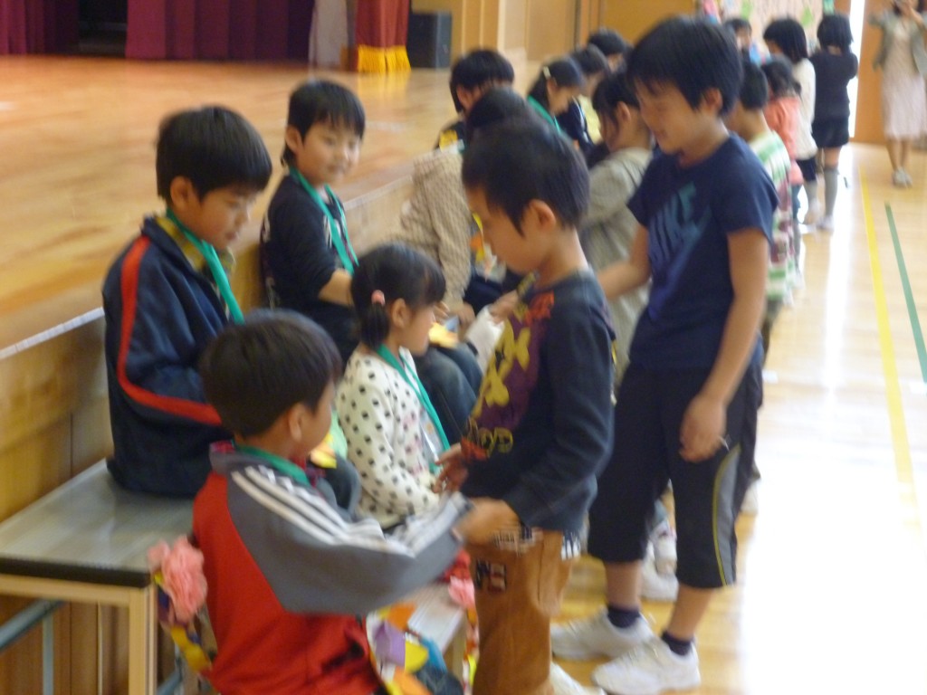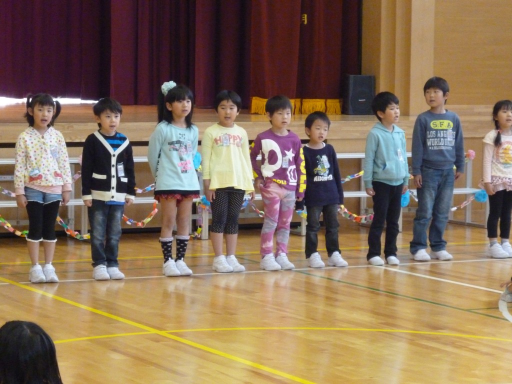 入学おめでとうしゅうかい 4月17日(木) Posted on 2014/04/18Updated on 2014/04/18by adminカテゴリー:全校 今日の3時間目に、「入学おめでとう集会」を行いました。1年生は、自分の名前と好きな食べ物を堂々と自己紹介しました。 校歌の発表では、6年生に教えてもらって一生懸命覚えた校歌を元気よく歌いました。 全校児童でゲームをしたり歌を歌ったりするなど、下村小学校全員で楽しい時間を過ごしました。