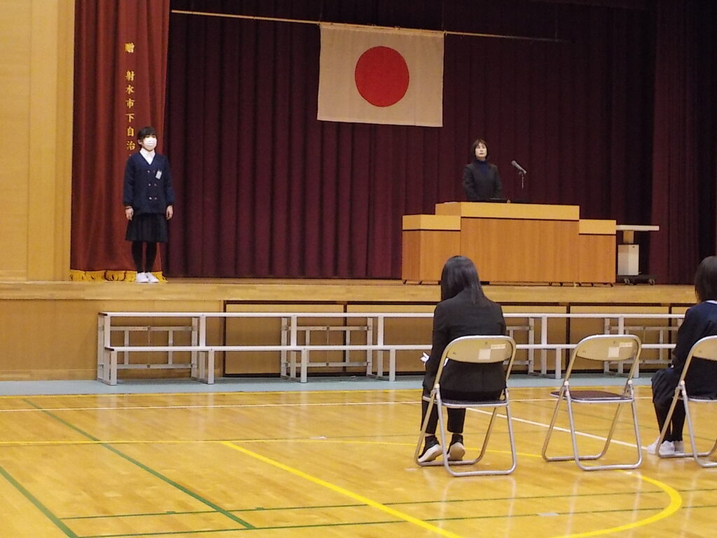 今日の予行では、本番を想定した動きや歌、よびかけの確認をしました。卒業生も在校生も集中力を切らさず、一つ一つ真剣に取り組んでいました。