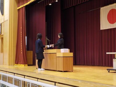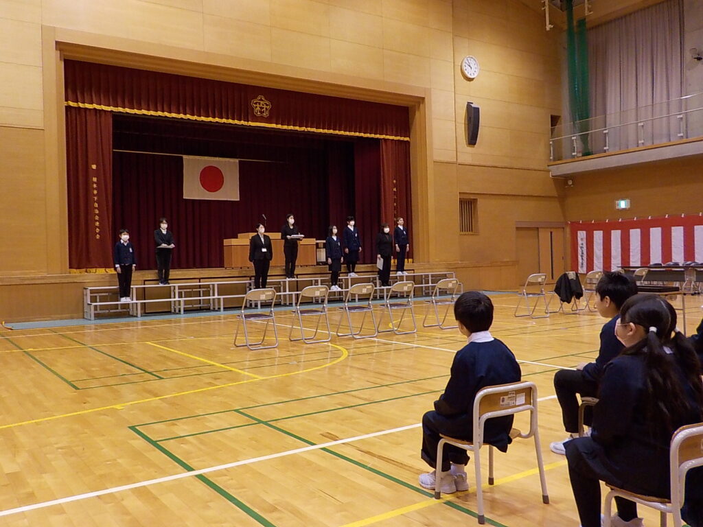本日、卒業式予行および卒業記念品贈呈式、卒業記念品授与式を行いました。