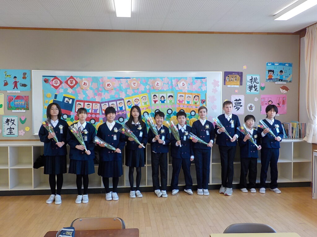 卒業式の後の「門出の式」では、在校生や保護者、教職員に見守られながら、笑顔で学び舎を後にしました。10名が歩む新しい道が、希望に満ちあふれたものであることを心から願っています。