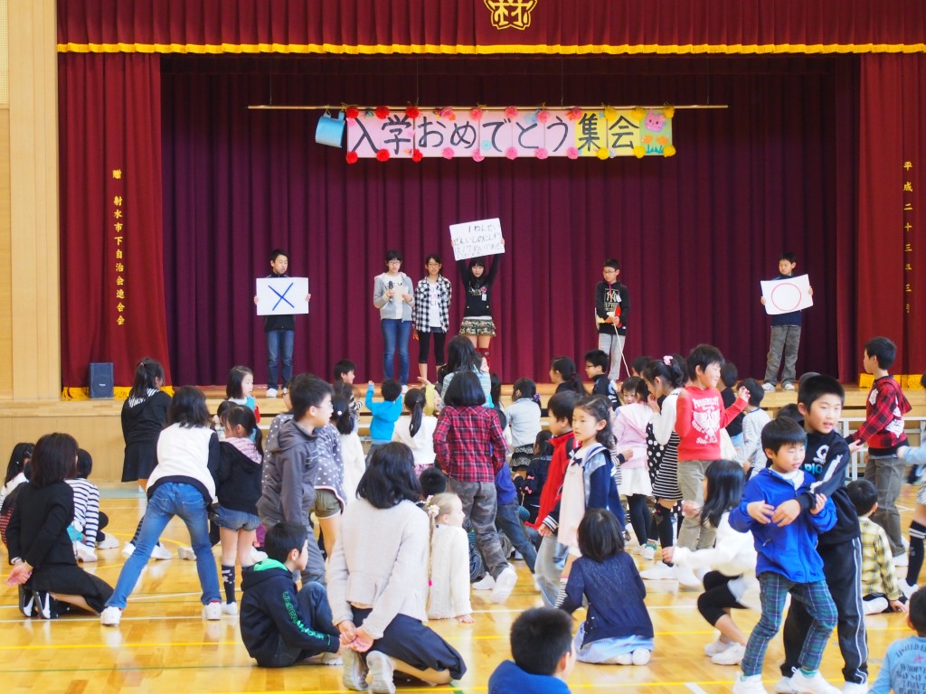 ファミリー参観&入学おめでとう集会 4月17日 Posted on 2015/04/21by adminカテゴリー:全校 新しい学年に進級して初めてのファミリー参観がありました。 どの子も集中して、一生懸命に学習に取り組んでいました。 ファミリー参観の後に、交通安全教室と1年生入学おめでとう集会がありました。 6年生が企画し、2~6年生みんなで1年生の入学を祝いました。 1年生も、素敵な校歌の歌声を響かせてくれました。