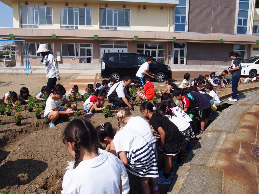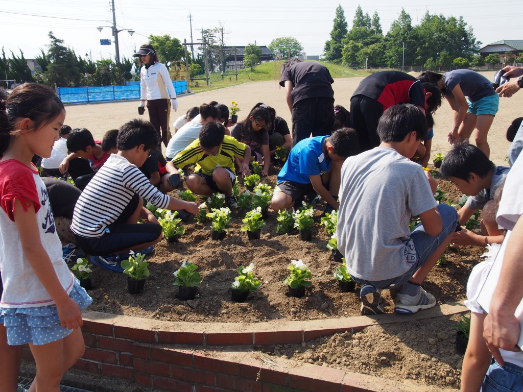 さいばいタイム(花壇の苗植え) 5月27日 Posted on 2015/05/27Updated on 2015/06/01by adminカテゴリー:全校 グリーンキーパーの方々に教わりながら、下村小学校の花壇に花の苗を植えました。 今年度のデザインは・・・なんと「北陸新幹線」です。 大きく育ち、美しい花を咲かせることを願いながら、心を込めて植えました。