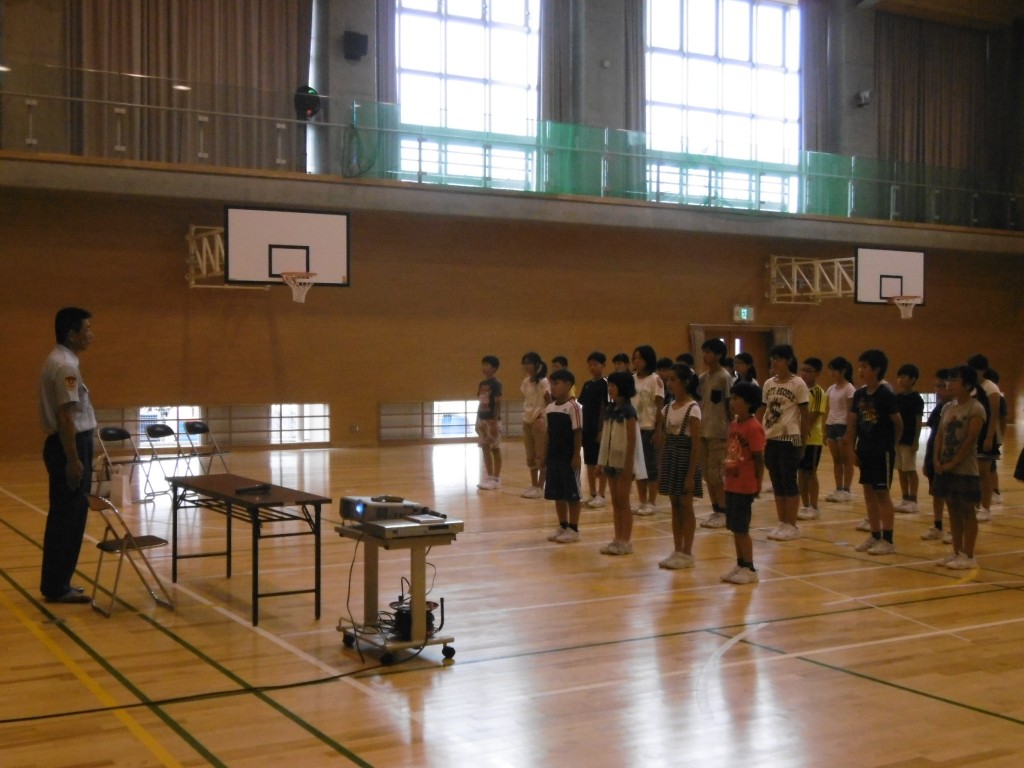 避難訓練&BFC入隊式 6月15日 Posted on 2015/06/16by adminカテゴリー:全校 射水消防署の方々をお招きして、避難訓練を行いました。 今年度は、全校の子供たちが「煙体験」を行い、煙の中では視界が悪くなることや姿勢を低くすることなどを学びました。 また、5年生が少年消防クラブに入隊し、火災の予防や消火の仕方について学びました。 火災の恐ろしさについて知る、よい機会となりました。