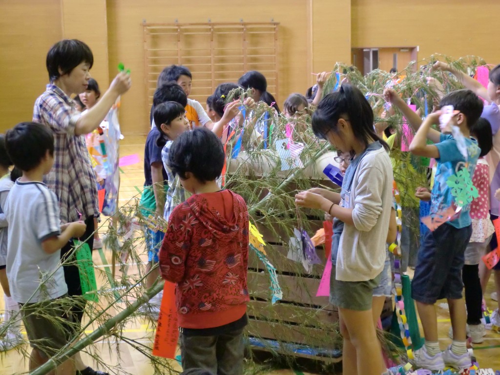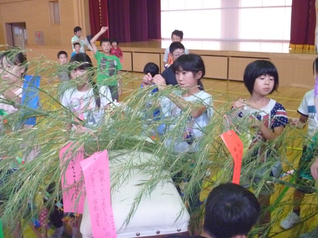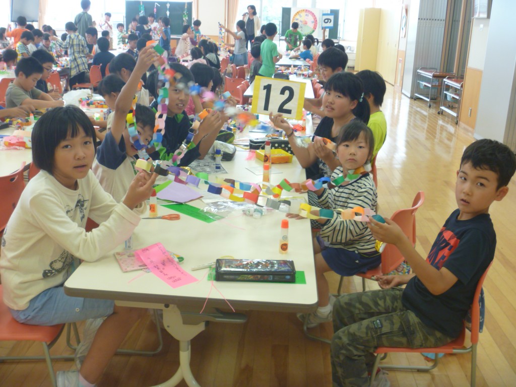 七夕かざり作り 6月30日 Posted on 2015/06/30Updated on 2015/07/28by adminカテゴリー:全校 七夕集会に向けて、みんなで七夕飾りを作りました。 縦割り班のみんなで協力して作りました。 その後、作った飾りと願いごとを書いた短冊を笹に結びました。 7月7日(火)の七夕集会が楽しみです。
