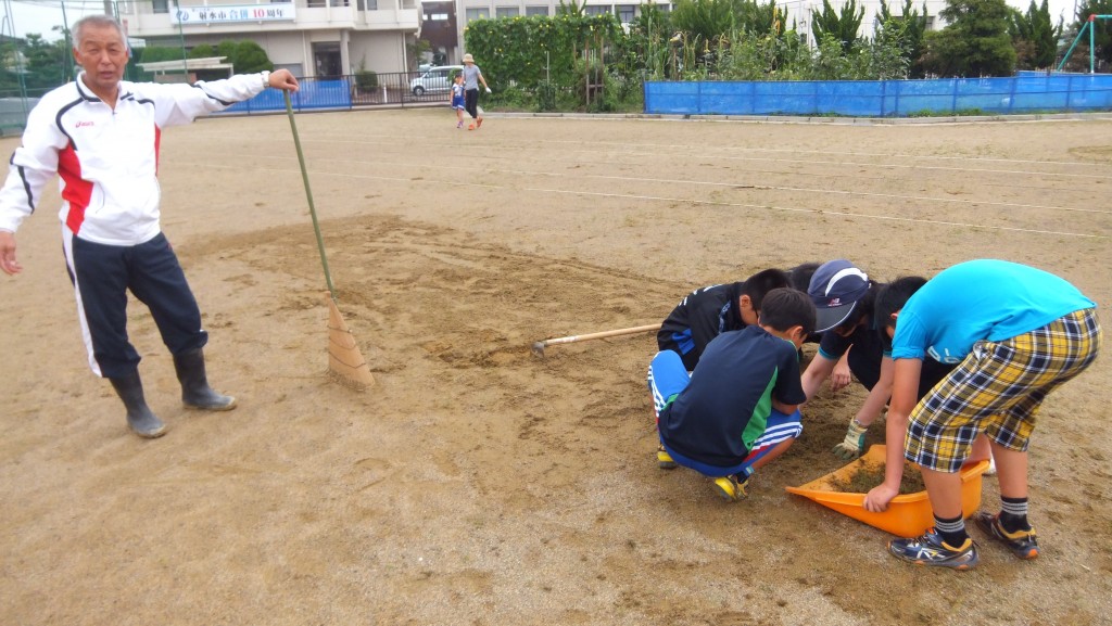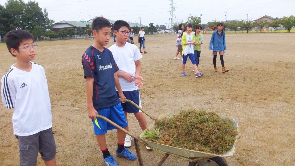 栽培タイム 9月8日 Posted on 2015/09/09by adminカテゴリー:全校 今朝の栽培タイムに、校庭の草むしりを行いました。 夏休み中に伸びた雑草を全校のみんなで力を合わせて抜くと、一輪車山盛り1杯分になりました。 また、サッカーゴール前の水がたまりやすい場所に砂を入れて、平らにならしました。 まだまだ新しい校庭を、ずっと大切に使っていきたいものです。
