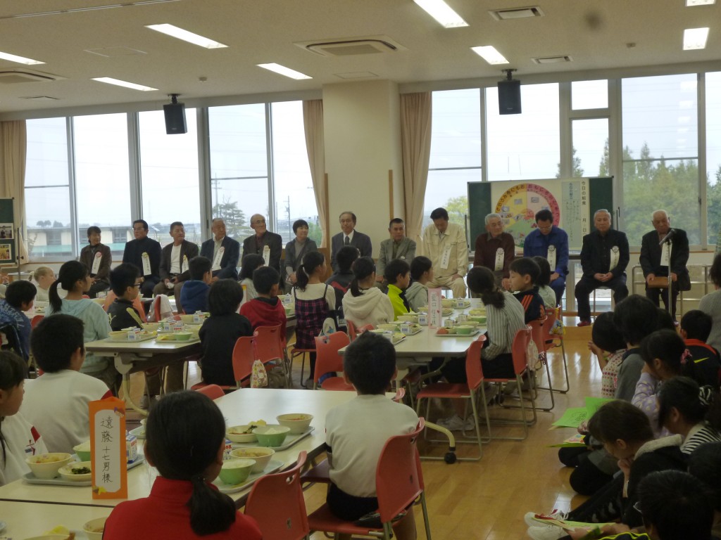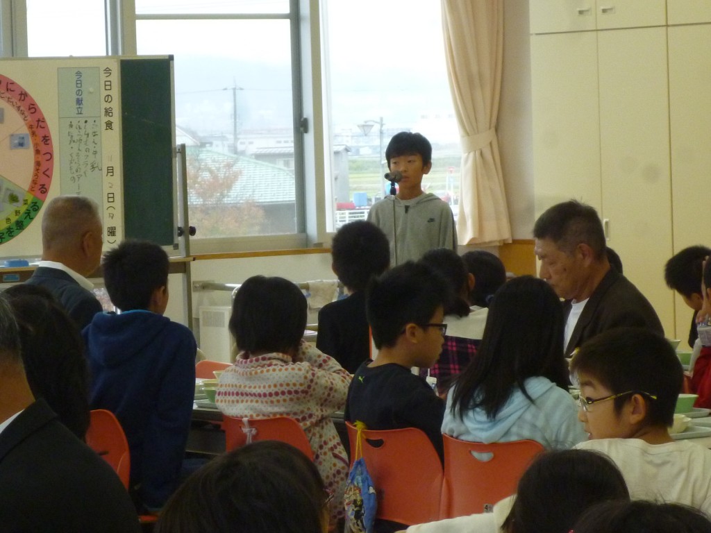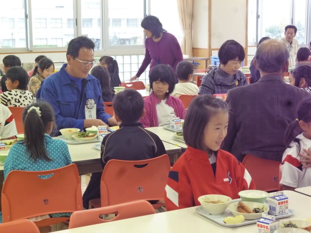 感謝会食 11月2日 Posted on 2015/11/10by adminカテゴリー:全校 畑や花壇のお世話に協力していただいた地域の先生方をお招きして、 感謝会食を行いました。 給食では、4・5年生が藍口さんに米作り体験をさせていただいた 田んぼでとれたお米を食べました。 地域の先生方に感謝の思いを伝え、交流を深めました。