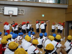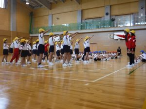 児童会&なかよし会スタート! 4月27日 Posted on 2017/04/28by adminカテゴリー:全校 平成29年度の児童会役員の任命式となかよし会(色団)の結団式がありました。 児童会の役員、各クラスの学級代表、委員会の委員長がそれぞれ1年間の意気込みを 話した後に、校長先生から任命証が渡されました。 続いて、なかよし会(色団)の結団式がありました。 赤団、青団、黄団がそれぞれ団長に続いてかけ声をかけて、気持ちを一つにしました。 運動会に向けて、いよいよ色団が動き出します。
