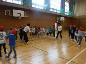 歌声タイム 5月9日 Posted on 2017/05/10by 3nenカテゴリー:全校 今年度最初の歌声タイムを行いました。 色団毎に「かもつれっしゃ」をしたり、ピアノの伴奏に合わせてリズムよく肩をたたいたりして 交流を深めました。 その後、運動会の歌の練習では、どの色団も心を合わせて元気よく歌いました。