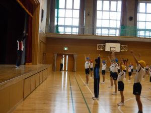 運動タイム 5月10日 Posted on 2017/05/12by 3nenカテゴリー:全校 朝の運動タイムでは、運動会に向けてラジオ体操の練習をしました。 手足を伸ばして、一つ一つの体操をていねいに行いました。 しっかりと体操をして、けがのないように競技を行いたいと思います。