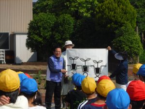 前田先生から、苗の植え方についての説明を聞き、心を込めて苗を植えました。