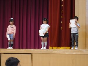 1年生にとっては、2度目の発表ですが、緊張しながらも、今回は3人の子供が発表しました。