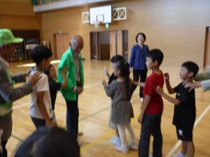 一緒にかもつれっしゃやなべなべそこぬけ等のゲームをして交流をしました。