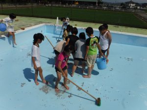 プールには、1年分の汚れがありましたが、協力してきれいにすることができました。